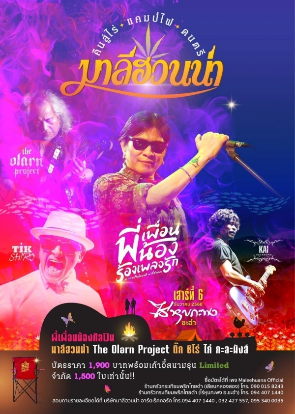 ร่วมขับกล่อมเสียงเพลงกับศิลปินเพื่อชีวิตขวัญใจมหาชน มาลีฮวนน่า ,The Olarn Project ,ติ๊ก ชิโร่ ,ไก่ กะละมังส์ ,วงพริกไทย