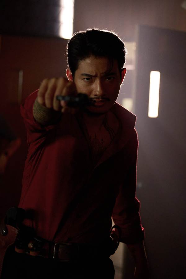 (มาริโอ้) “ปกติเราจะเห็นเสืออยู่ทีมเดียวกัน แต่เรื่องนี้เราจะได้เห็นสองเสือสู้กัน วัดใจกันกับ ‘พี่เป้’ ในคิวแรกเจอกันก็ต่อยกันเลย มันไม่ใช่แค่ยิงกระสุนคตแล้วเราหนีอย่างเดียว มันมีต้องแลกหมัดกันหนักหน่วง ต้องมีคิวสลิง สู้กันชนิดประตูหลุดลงมาแล้ว ‘โอ้’ ต้องตีลังกาสู้กันจนทะลุกระจก เหมือนวันนั้นไปเล่นรถไฟเหาะมา 10 รอบ ผมต้องวิ่งเอียง 90 องศาขนานกับพื้นโลก วิ่งแบบสับหลบเอฟเฟกต์ไปตลอดทางอีก วิ่งบนลู่วิ่งแล้วรถลากไปอีก ม้วนขึ้นไปตรงประตู ทะลุห้อง ผมเข้าใจแล้วว่าวิ่งจนขาขวิดมันเป็นยังไง โอ้วิ่งจนหมดแรงขาพลิกนิดหน่อยแต่ก็มีทีมพยาบาลวิ่งมาฉีดคลายกล้ามเนื้อให้ โอ้โชคดีที่แค่เข่ามันซ้น ไม่ได้เป็นไรมากครับ”