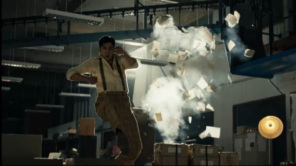 (โขม ก้องเกียรติ) “เราดีไซน์แอ็กชันนี้เพื่อให้เห็นความพลิ้วและความกวนของทั้งคู่ในแนวสนุกสนานไม่ตึงเครียด โดยเอา ‘กระสุนคต’ มาปะทะกับ ‘แคล้วคลาด’ แล้วมันจะเป็นยังไง จะแพ้ชนะกันด้วยวิธีไหนตั้งแต่มือเปล่าไปจนอาวุธและอาคม คือมันขี้โกงทั้งคู่แหละ การต่อสู้ของ‘มาริโอ้’ นอกจากเขาจะมีคาถาแคล้วคลาด เขายังมี ‘วิชาลิงลม’ มีความสามารถว่องไวในการหลบหลีกอาวุธต่างๆ ในการถ่ายทำเราออกแบบอุปกรณ์เพื่อให้โอ้วิ่งพรีเซนต์วิชา ถ้าปกติที่เขาทำกันคือเราถ่ายวิ่งบนกรีนสกรีน แล้วเขียนแบ็กกราวด์ผ่านไปเร็วๆ แต่เรารู้สึกว่าเราอยากให้วิชานี้มันเร็ว แต่ไม่เร็วเหนือแสงขนาดนั้น เลยมีการเอาลู่วิ่งเทรดมิล (Treadmill)มาดัดแปลงให้มันกลายเป็นริก (Rig) เชื่อมต่อกับรถ ATV ที่ติดกล้อง เพื่อที่จะลากโอ้ที่วิ่งบนเทรดมิลไปด้วยถ่ายไปด้วย ระยะทางต้องยาวมากพอที่จะทำสปีดได้ โอ้ก็วิ่งบนรถลากนี้จนสุดขอบตึก เราเปิดกล้องมาคิวแรกก็วอร์มเครื่องกันด้วยแอ็กชันฉากนี้เลย โอ้ได้วิ่งสับตั้งแต่เริ่มเปิดกล้องเลย”