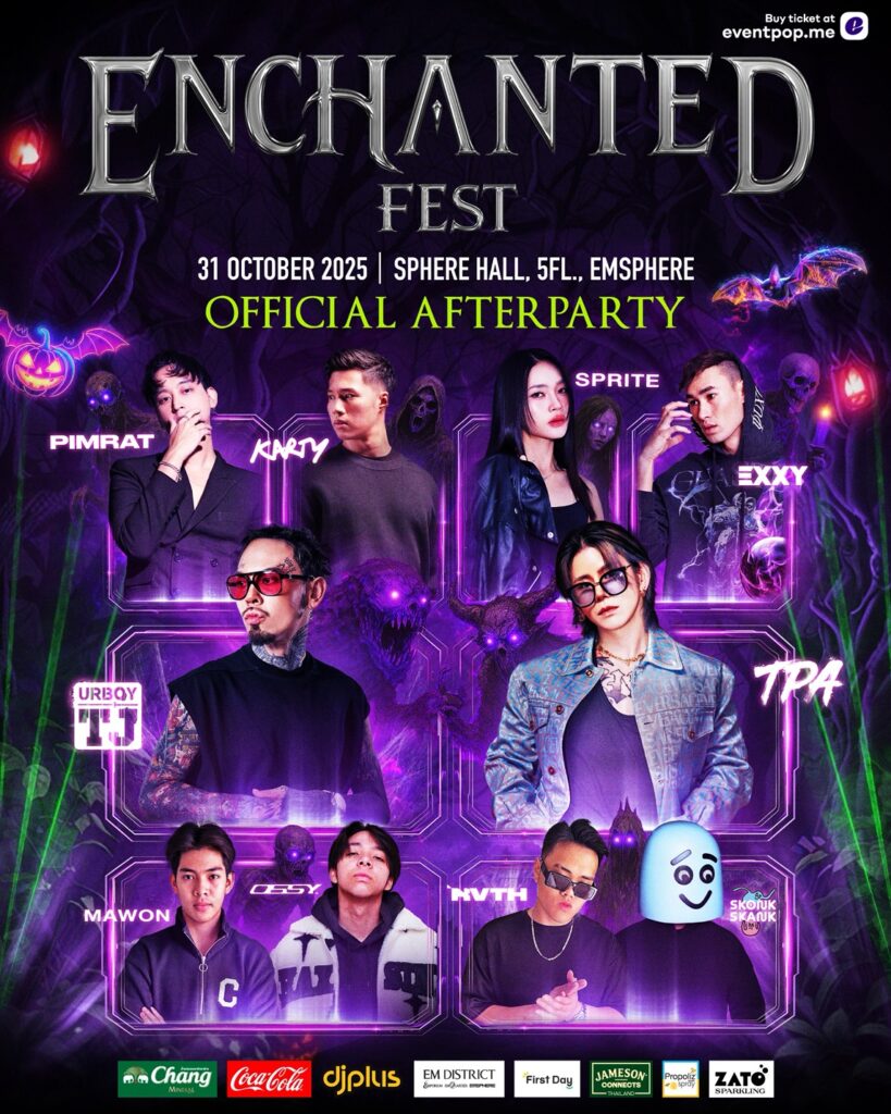 พร้อมกันรึยังกับโค้งสุดท้ายที่จะมาปลดปล่อยวิญญาณความมันส์ใน งาน YUMYUM presents ENCHANTED FEST 2025 (ยำยำ พรีเซ็นต์ เอ็นแช้นเท็ด เฟส 2025) โดย Enchanted VIP(เอ็นแช้นเท็ด วีไอพี) นำทีมโดย นายชาร์ล โรเบิร์ต Head Project Director กับฮาโลวีนมิวสิกเฟสติวัลสุดยิ่งใหญ่ใจกลางเมืองที่ทุกคนรอคอย ที่จะพาทุกคนเข้าสู่ความมันส์แห่งโลก ENCHANTED WORLD ในค่ำคืนวันฮาโลวีนอย่างแท้จริง จัดเต็ม 2 เวที 2 สไตล์ ในวันเดียวกัน เอาใจทุกทาร์เกตทั้งสายคอนเสิร์ต ณ UOB LIVE at EMSPHERE กับไลน์อัพ ศิลปินตัวท็อปของไทย ได้แก่ BUS because of you i shine, JEFF SATUR, TATTOO COLOUR, 4EVE, THE TOYS, PIXXIE, URBOYTJ x TIMETHAI และ YOUNGOHM ซึ่งในปีนี้นอกจาก ENCHANTER ทุกคนจะได้พบกับพลังการโชว์แบบ DUO ครั้งแรกจาก URBOYTJ x TIMETHAI แล้ว ยังมีอีกความพิเศษที่ทุกคนพลาดไม่ได้ กับเซอร์ไพร์สโชว์ จาก BUS because of you i shine ที่บอกเลยว่ามีแค่บนเวที ENCHANTED FEST 2025 เท่านั้น!! ส่วนสายปาร์ตี้ ห้ามพลาด กับเวที “ENCHANTED FEST 2025 OFFICIAL AFTERPARTY” ณ SPHERE HALL at EMSPHERE กับไลน์อัพ DJ Set ที่จัดมาแบบเน้นๆ ไม่ว่าจะเป็น TPA, DJ KARTY, DJ SPRITE, DJ EXXY , DJ Mawon x DJ OSSY และ DJ RVTH x MC SKONK SKANK โดยฮอลล์นี้มีแขกรับเชิญสุดพิเศษที่มาอัพเลเวลความเดือดอย่าง URBOYTJ ที่พร้อมทุ่มสุดตัวเสริ์ฟความมันให้แฟนๆทั้ง 2 สาย อีกทั้งยังจัดเซอร์ไพร์สให้กับโชว์ฮาโลวันเซ็ตใหม่ล่าสุดสำหรับ ENCHANTER สายปาร์ตี้ทุกคนอีกด้วย