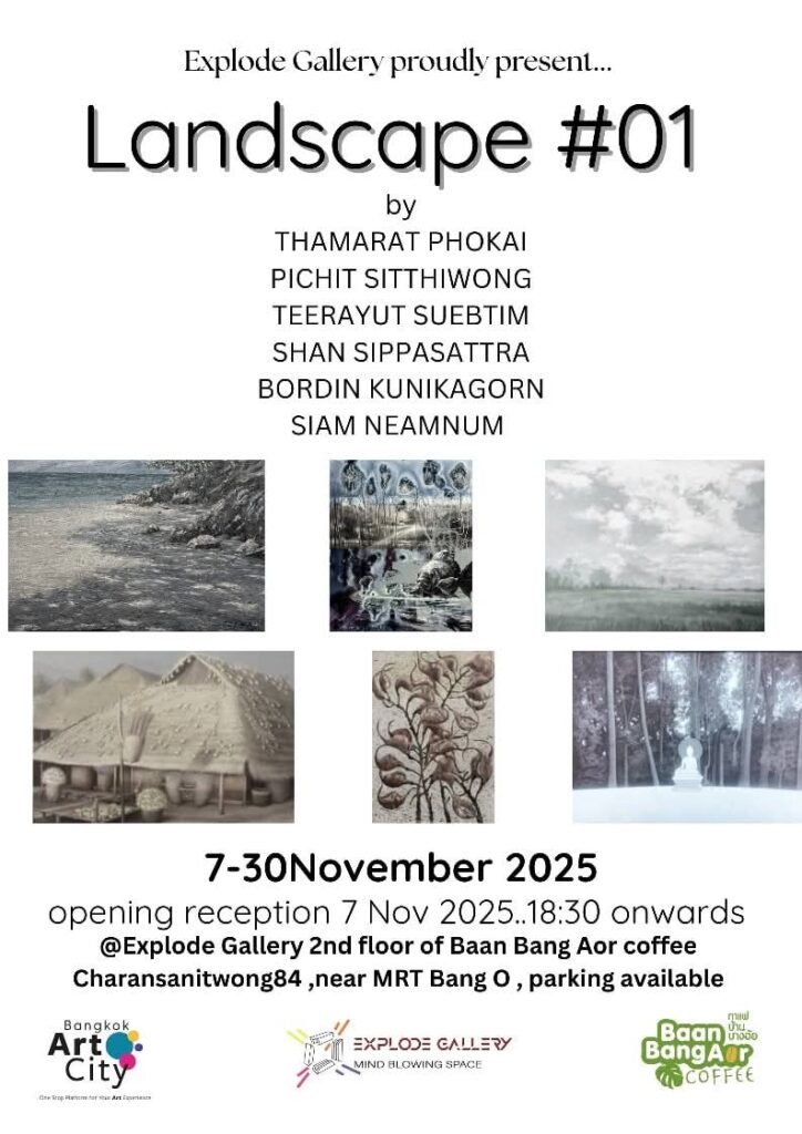“Landscape #01” คือการชำเลืองมองภูมิทัศน์ด้วยสายตาของศิลปิน 6 คน ที่แตกต่างกันทั้งเรื่องราว มุมมอง เทคนิค และอารมณ์