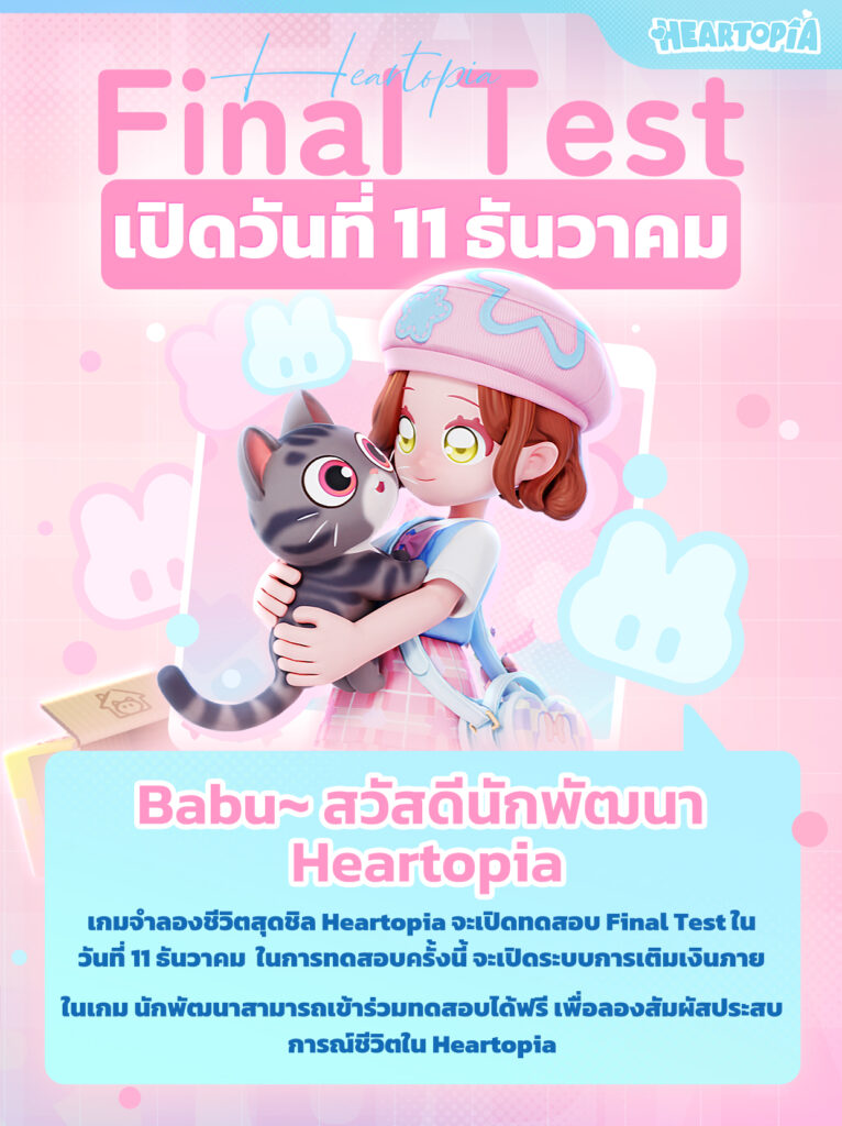 Heartopia เกมมือถือจำลองการใช้ชีวิตสุดสโลว์ไลฟ์ จากทีมพัฒนาของบริษัท XD Inc เกมจำลองการใช้ชีวิตที่เล่นได้อย่างอิสระตามใจ เกม Heartopia เตรียมเปิดทดสอบ Final Test ทั่วโลก ตั้งแต่ 11 ธันวาคม 2568 เวลา 10.00 จนถึง 24 ธันวาคมนี้เท่านั้น