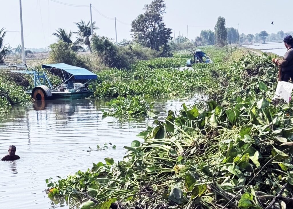 โครงการส่งน้ำและบำรุงรักษาโพธิ์พระยา เร่งกำจัดผักตบชวาคลองบางใหญ่ เพิ่มประสิทธิภาพการระบายน้ำในพื้นที่สุพรรณบุรี