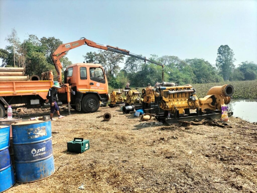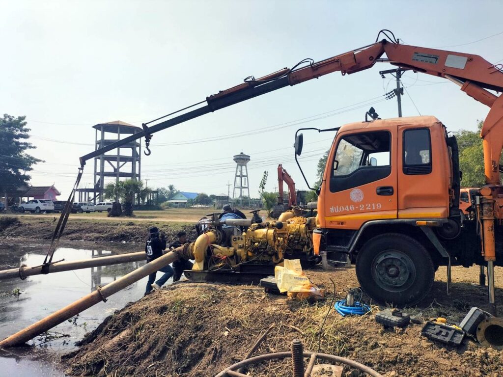 สำนักงานชลประทานที่ 10 ลงพื้นที่ตำบลตลุก ติดตั้งเครื่องสูบน้ำและขุดลอกสระประมง เพิ่มศักยภาพกักเก็บน้ำ บรรเทาความเดือดร้อนชาวบ้าน