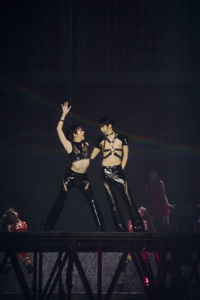 ที่สุดของที่สุดกับโชว์ที่คาดไม่ถึงของ ‘GUN – VICTOR – ONGLEE’ เมื่อปล่อยพลังเสียงสะกดทั้งฮอลล์ในเพลง ‘Love On Top’ และเวทีแทบลุกเป็นไฟกับท่าเต้นสุดแซ่บและเซ็กซี่ที่มาแบทเทิลกันของ ‘CHOKUN’ พร้อมแขกรับเชิญเคมีตรงกันอย่าง ‘ปลั๊กกี้ PERSES’ มาช่วยกันทำให้เวทีร้อนแรงในเพลง ‘Shake It’ ได้แบบเริ่ด ๆ เลยแหละ โดยก้าวข้ามความท้าทาย ทั้งเต้นบนเวทีที่สูงและเลื่อนไปกลางฮออล์ พร้อมกับสายน้ำกลางอิมแพ็ค อารีน่า ที่เพิ่มดาเมจความแซ่บให้เดือดขึ้นไปอีก ส่วนคำว่าเหนื่อยไม่มีในโชว์นี้ของ ‘KIM – GORN’ ที่เต้นแบบไม่คีฟลุคต้องมันส์ให้สุดเท่านั้นในเพลง ‘Sad Aerobic’ และ Rap ไปต่อในเพลง ‘ทะลึ่ง’ ที่เกินคำว่าทำถึงไปไกล