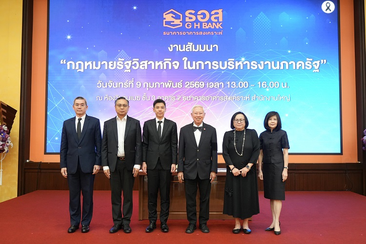 โดยสามารถตอบสนองนโยบายของรัฐบาลในการพัฒนาเศรษฐกิจและสังคมของประเทศ ในการบริหารงานภาครัฐโดยรวมได้อย่างมีประสิทธิภาพ ซึ่งภายในงานมีผู้แทนจากหน่วยงานกำกับดูแล องค์กรอิสระ และรัฐวิสาหกิจต่าง ๆ เข้าร่วมรับฟัง กว่า 180 ท่าน อาทิ เลขาธิการคณะกรรมการป้องกันและปราบปรามการฟอกเงิน (ปปง.), สำนักงานคณะกรรมการป้องกันและปราบปรามการทุจริตแห่งชาติ (ป.ป.ช.), สำนักงานศาลยุติธรรม, สำนักงานศาลปกครอง, สำนักงานอัยการสูงสุด, สำนักงานตรวจเงินแผ่นดิน, กรมบัญชีกลาง, สำนักงานเศรษฐกิจการคลันเศรษฐกิจการคลัง, ธนาคารแห่งประเทศไทย และสถาบันการเงินของรัฐ 7 แห่ง เป็นต้น โดยงานสัมมนา “กฎหมายรัฐวิสาหกิจ ในการบริหารงานภาครัฐ” จัดขึ้น ณ ห้องวิมานเมฆ ธนาคารอาคารสงเคราะห์ สำนักงานใหญ่ และถ่ายทอดสดผ่าน GHB Live Channel ไปยัง ธอส. ทั่วประเทศ และระบบ ZOOM ไปยังหน่วยงานภายนอกและสถาบันการเงินของรัฐ รวม 15 แห่ง เมื่อวันที่ 9 กุมภาพันธ์ 2569