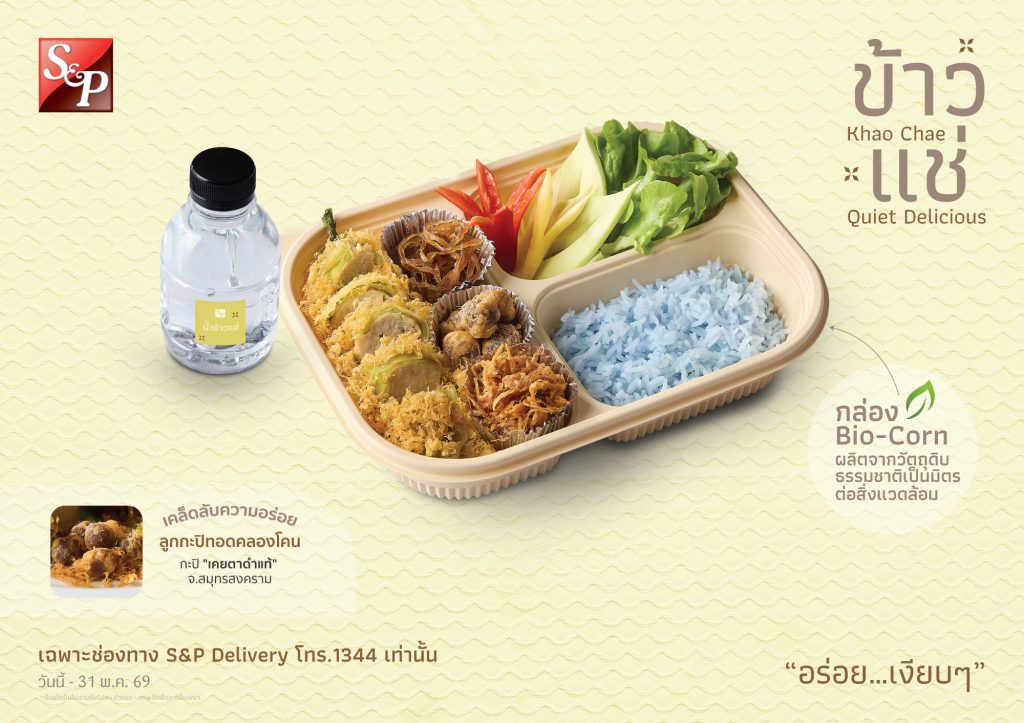 นอกจากการพัฒนาเมนูเพื่อสุขภาพแล้ว บริษัทฯ ยังให้ความสำคัญกับการดำเนินธุรกิจอย่างยั่งยืนเพื่อลดผลกระทบต่อสิ่งแวดล้อม ด้วยการเลือกใช้บรรจุภัณฑ์ Bio-Corn ผลิตจากวัตถุดิบธรรมชาติที่เป็นมิตรต่อสิ่งแวดล้อม ทดแทนการใช้พลาสติกจากปิโตรเลียม โดยสามารถย่อยสลายได้ตามธรรมชาติ ช่วยลดปริมาณขยะพลาสติก และลดผลกระทบต่อสิ่งแวดล้อมในระยะยาว ซึ่งเป็นการส่งเสริมแนวคิดเศรษฐกิจหมุนเวียน (Circular Economy) เพื่อความยั่งยืน “ข้าวแช่” เอส แอนด์ พี จึงไม่เพียงเป็นเมนูคลายร้อนตามฤดูกาลเท่านั้น แต่ยังสะท้อนบทบาทของแบรนด์ที่มุ่งมั่นพัฒนาอาหารไทยให้ตอบโจทย์อนาคต ทั้งในด้านสุขภาพ คุณภาพชีวิต และความรับผิดชอบต่อสิ่งแวดล้อม