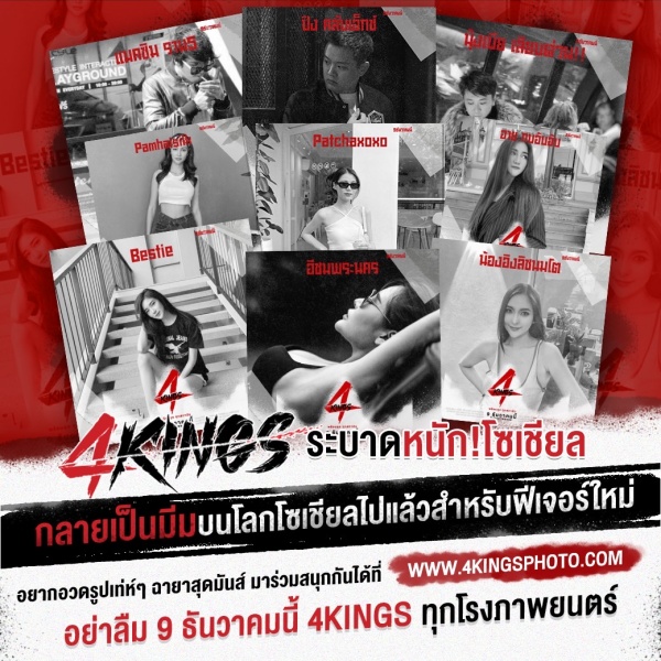 กระหึ่ม โซเชียล! กลายเป็นมีมบนโลกโซเชียลไปแล้วสำหรับฟีเจอร์ใหม่ลูกเล่นของภาพยนตร์เรื่อง 4KINGS ที่ปล่อยออกมาให้ทุกคนได้มีส่วนร่วมสนุกไปกับภาพยนตร์ โดยการนำภาพของตัวเองมาเป็นโปสเตอร์หนัง พร้อมด้วยฉายาสุดเท่ ทำให้เพื่อนๆบนโลกโซเชียลต่าง ตั้งฉายาของตัวเองได้อย่างครีเอท แถมฮา พาเป็นไวรัลไปกันใหญ่